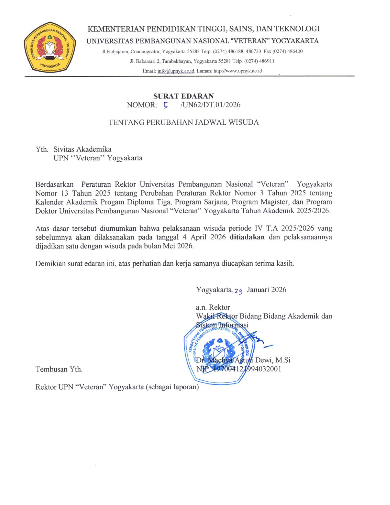 SE PERUBAHAN JADWAL WISUDA
